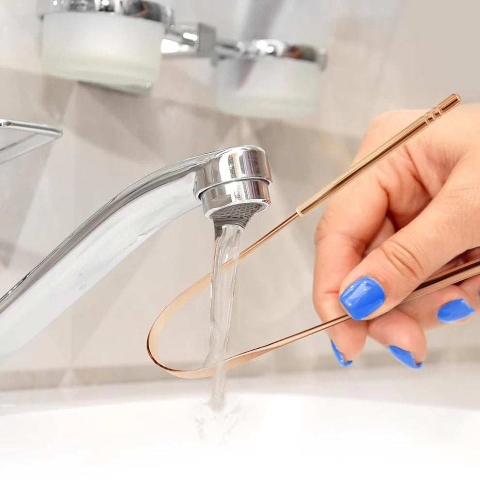 The Copper Tongue Scraper is designed to remove odor-causing bacteria, reducing plaque buildup, and supporting fresher breath—especially critical for denture wearers who rely on full-mouth hygiene